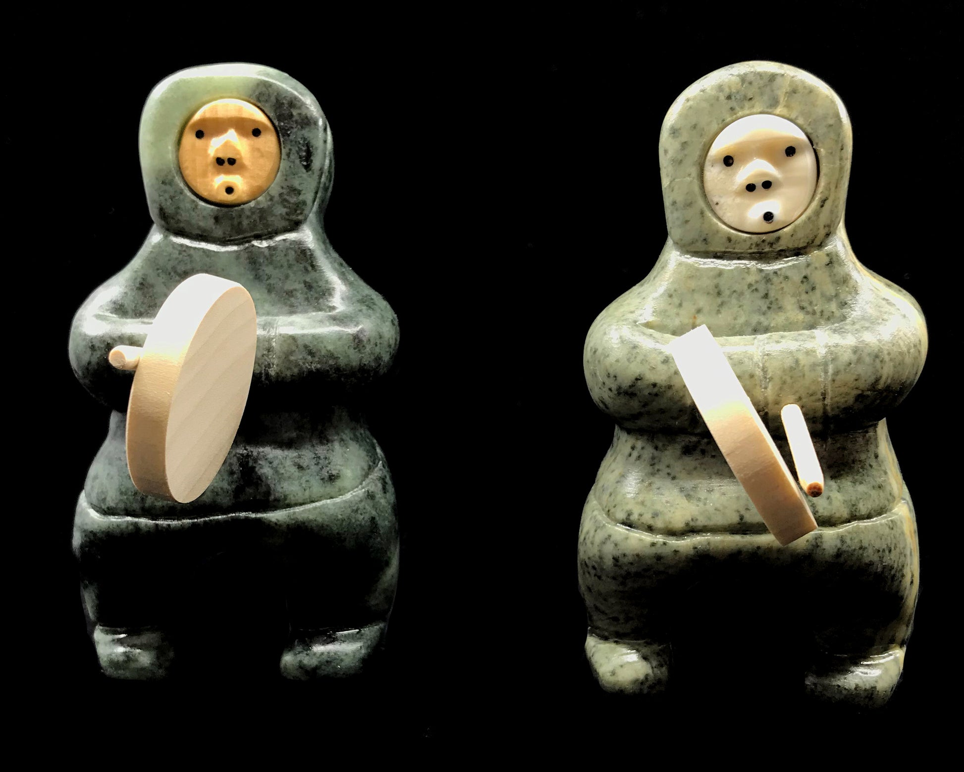 Alaska Native Hand-carved 4" soapstone dancers by Inupiaq Lenwood Saccheus of Elim, Alaska.