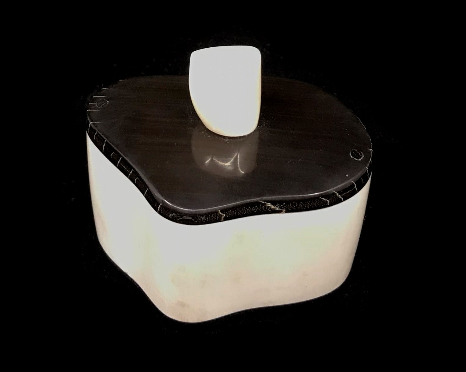 Hand-Carved Alaska Native Ivory Tusk Box with Baleen Base by Inupiaq Artist Lenwood Saccheus