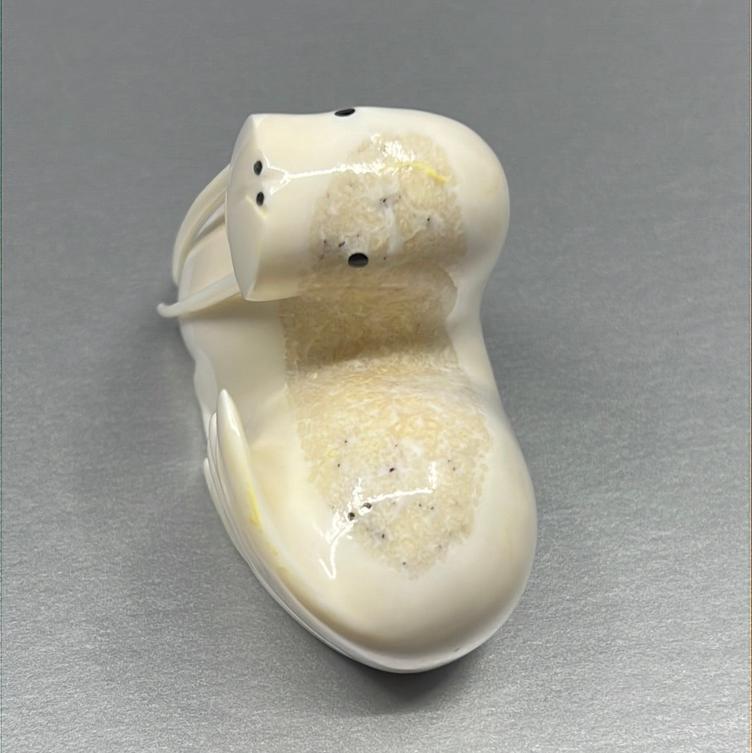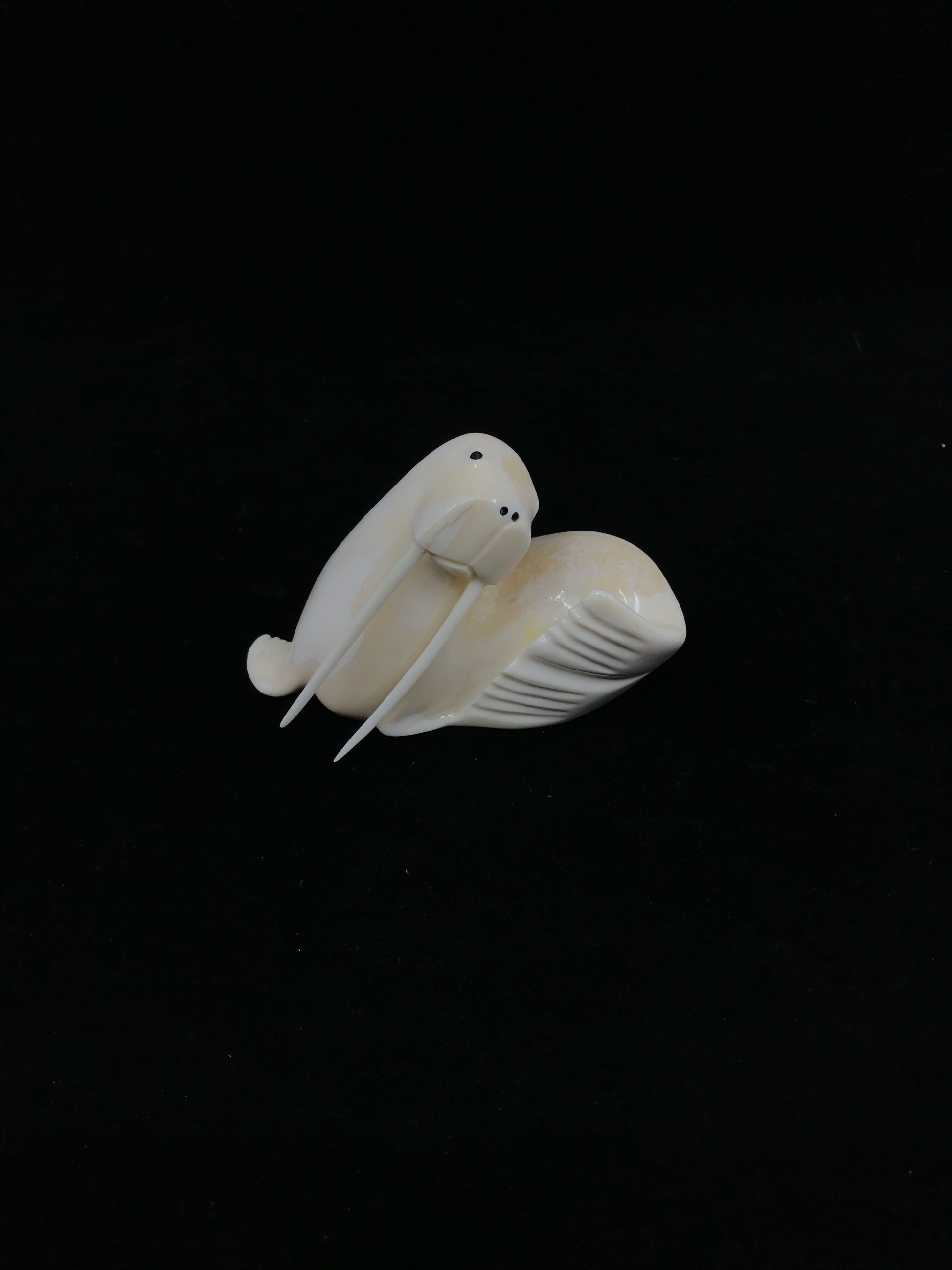 Hand-carved walrus on Ivory with baleen inlay eyes and nostrils by Alaska Native artist Andrew Qooyou.