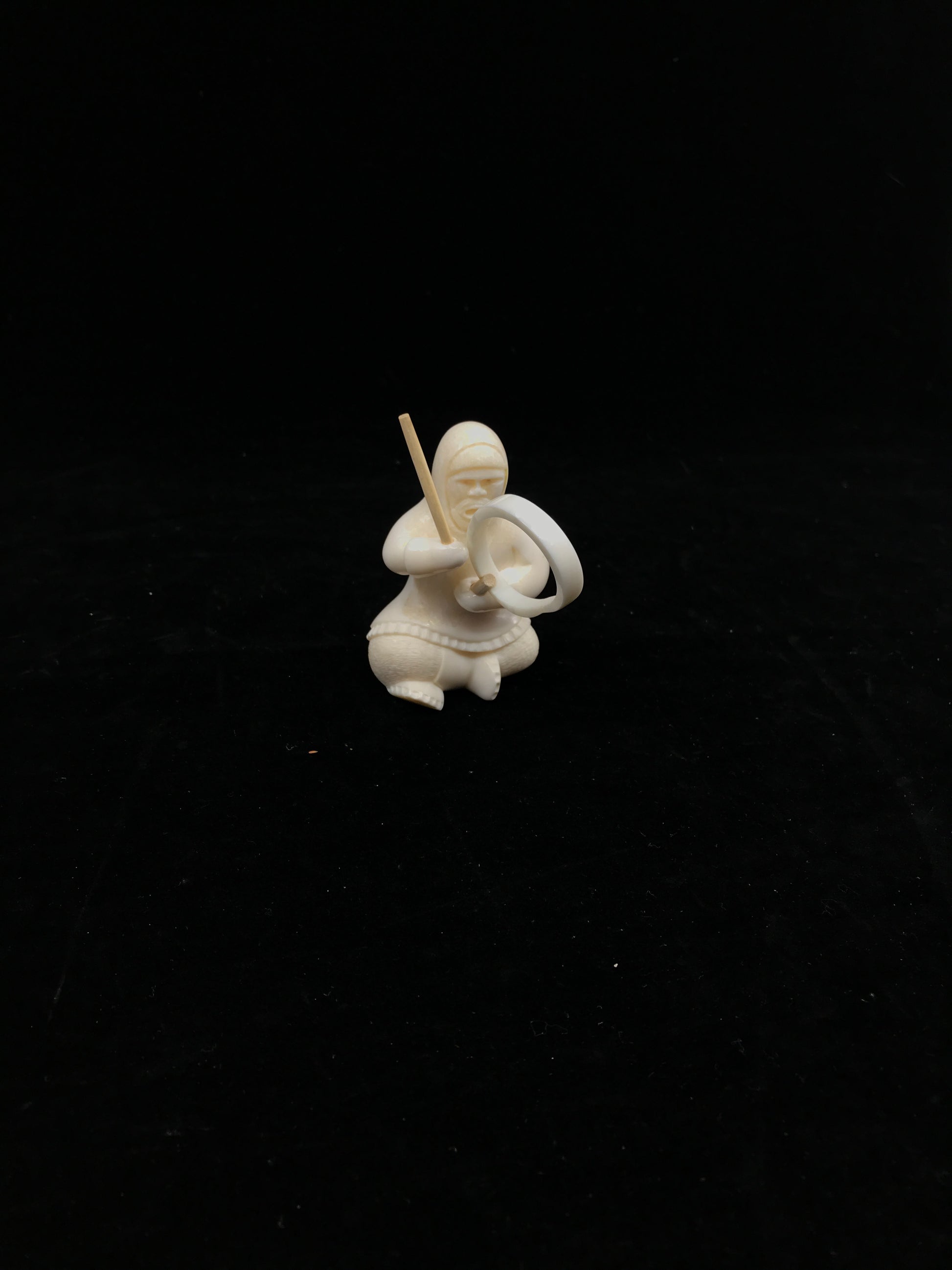Ivory Carving- E. Noongwook; Drummer, 3"