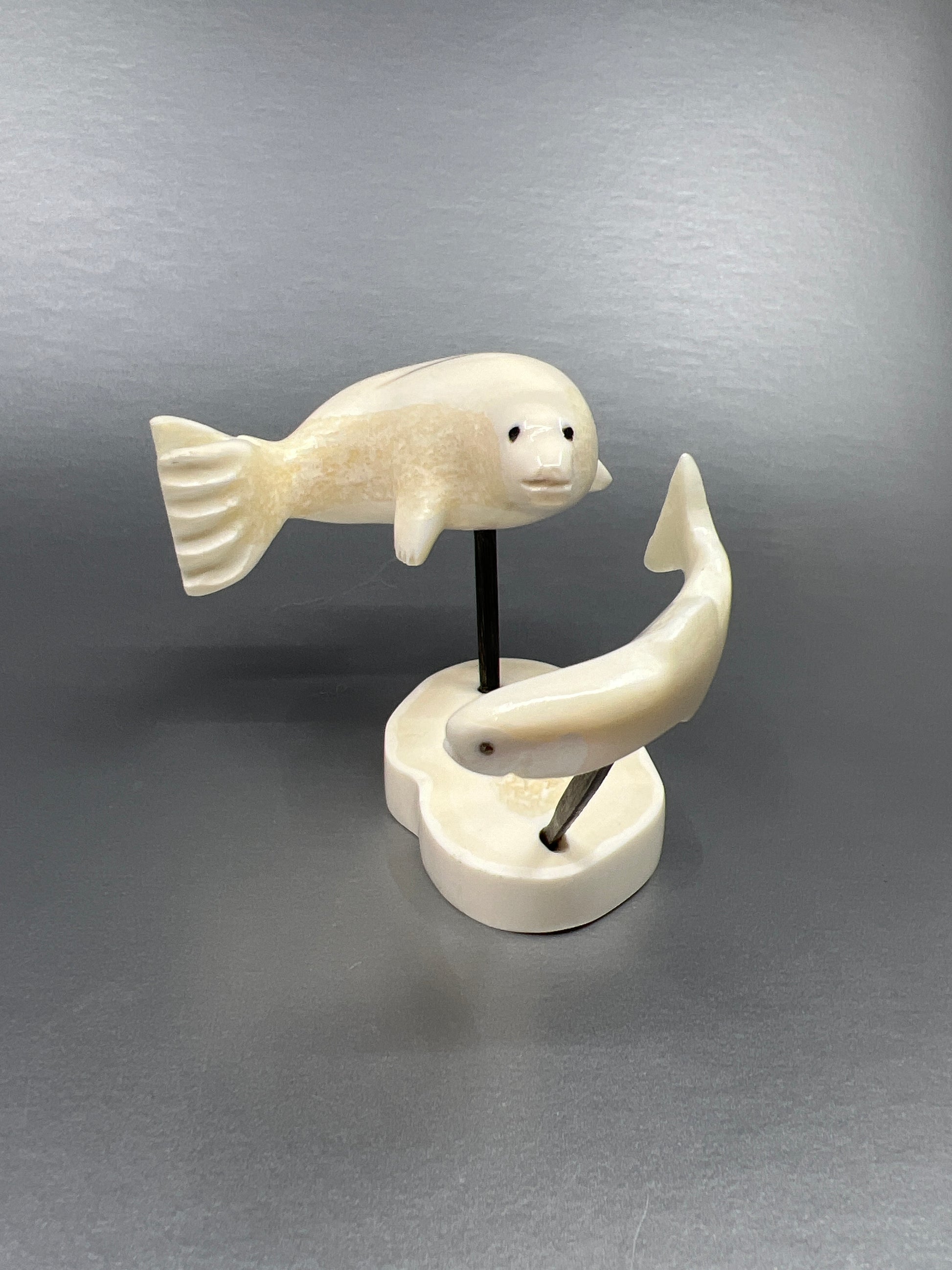 Ivory Carving- K. Wilson; Seal Chasing Fish, Ivory, Baleen