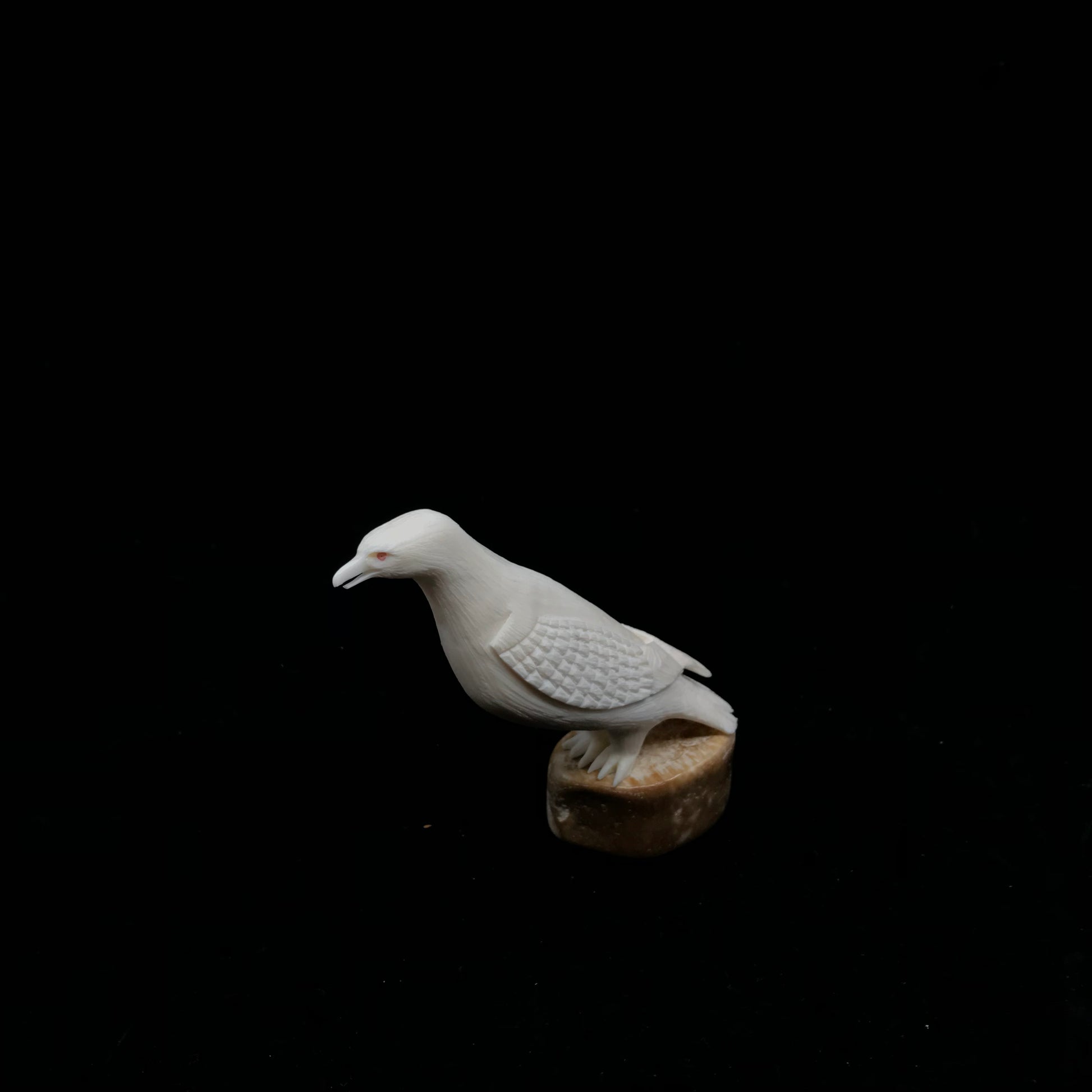 Absolutely, beautifully detailed hand-carved Seagull of walrus ivory with scrimshaw orange eyes.