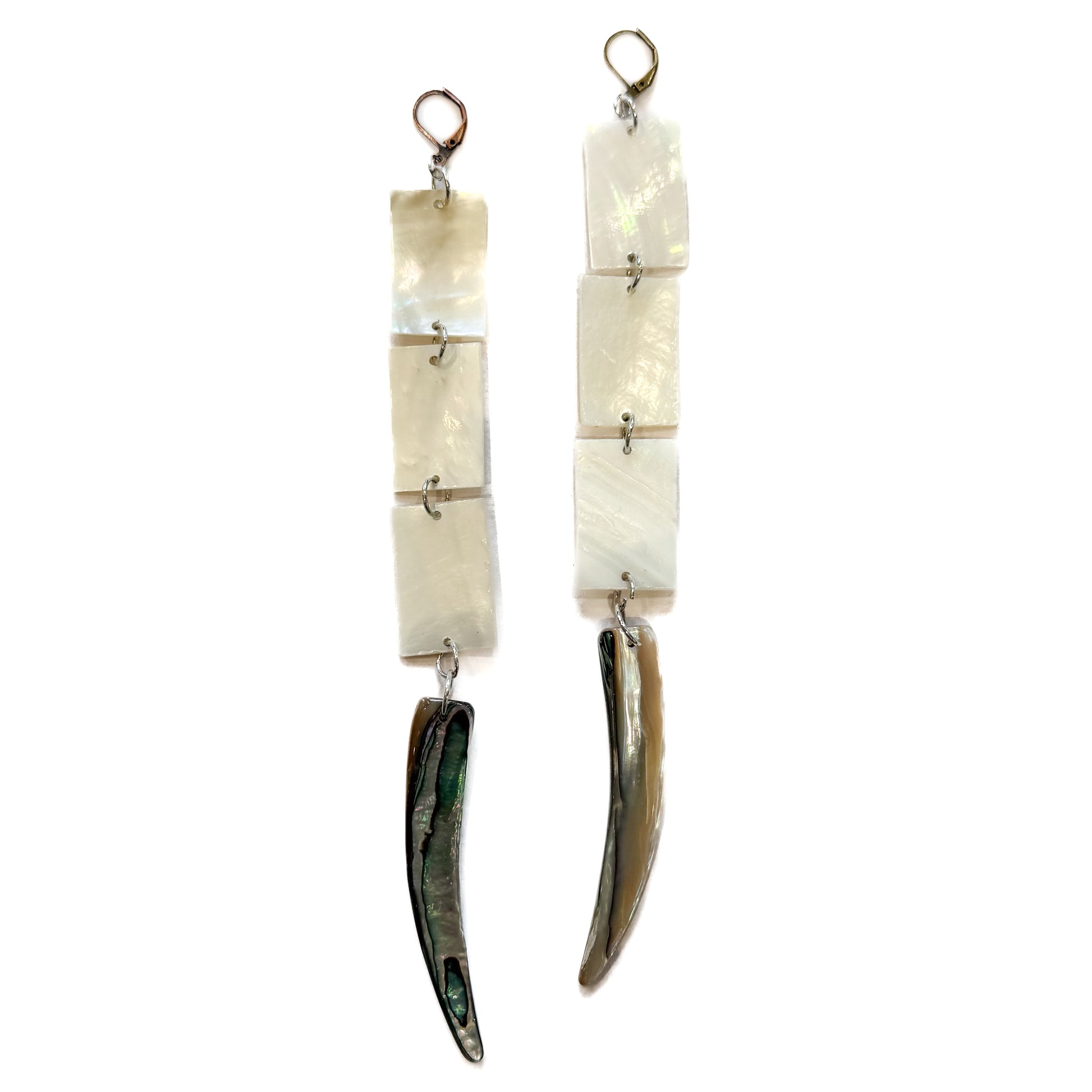 Kajiste Auntie Earrings Triple-tier Rectangle Mother of Pearl and Abalone Tusk